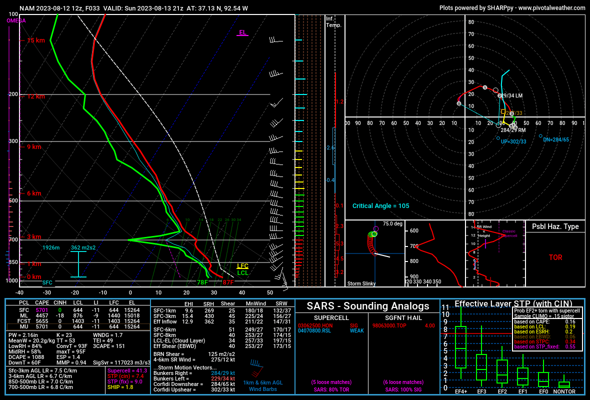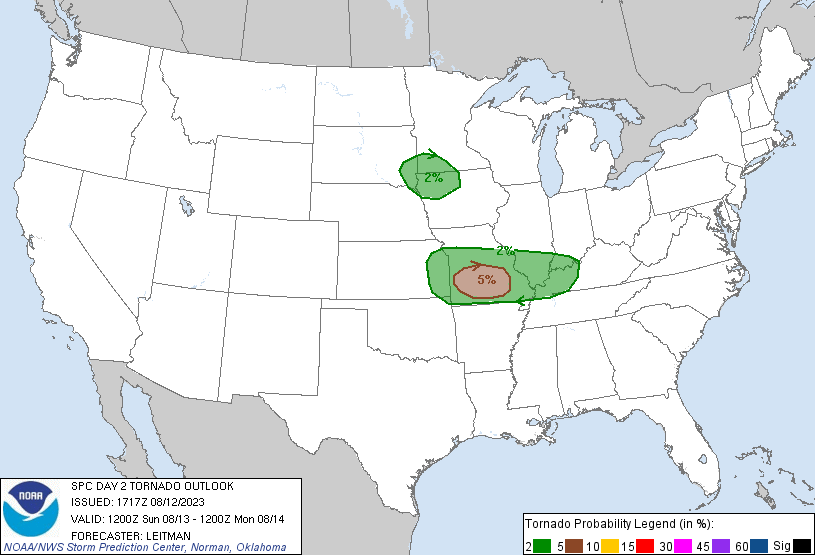 The Kansas/Missouri area clearly has the greater severe weather potential. Some NAM soundings were showing a lot (~6000) of free CAPE.