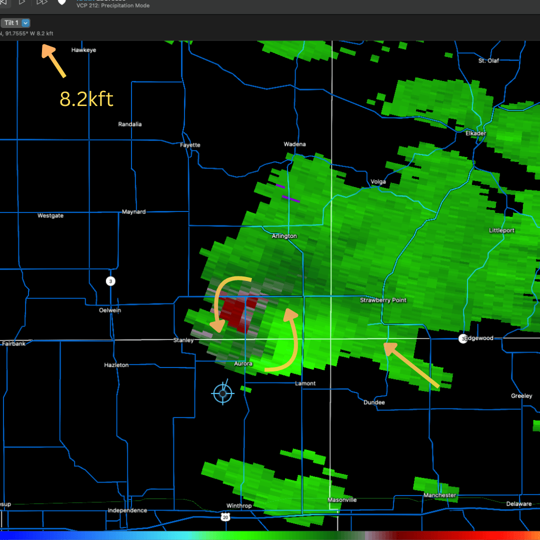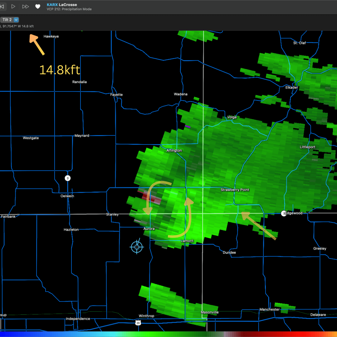 This doesn’t mean we avoid higher tilts altogether. In fact, the opposite! Here, Tilt 2 is giving us a good indication of how ‘deep’ (high) the rotation is occurring.