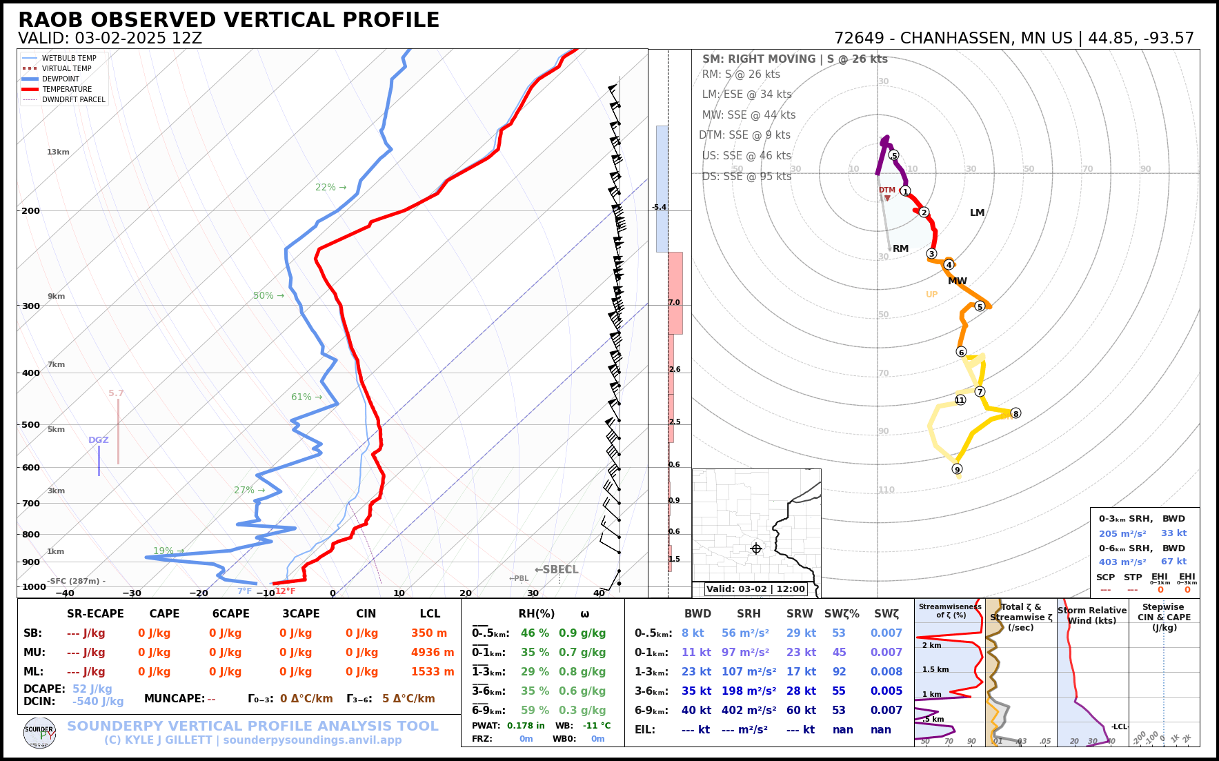 From these measurements of temperature, relative humidity, and pressure at different heights, the Moist Adiabatic Lapse Rate (MALR) can be calculated as well.