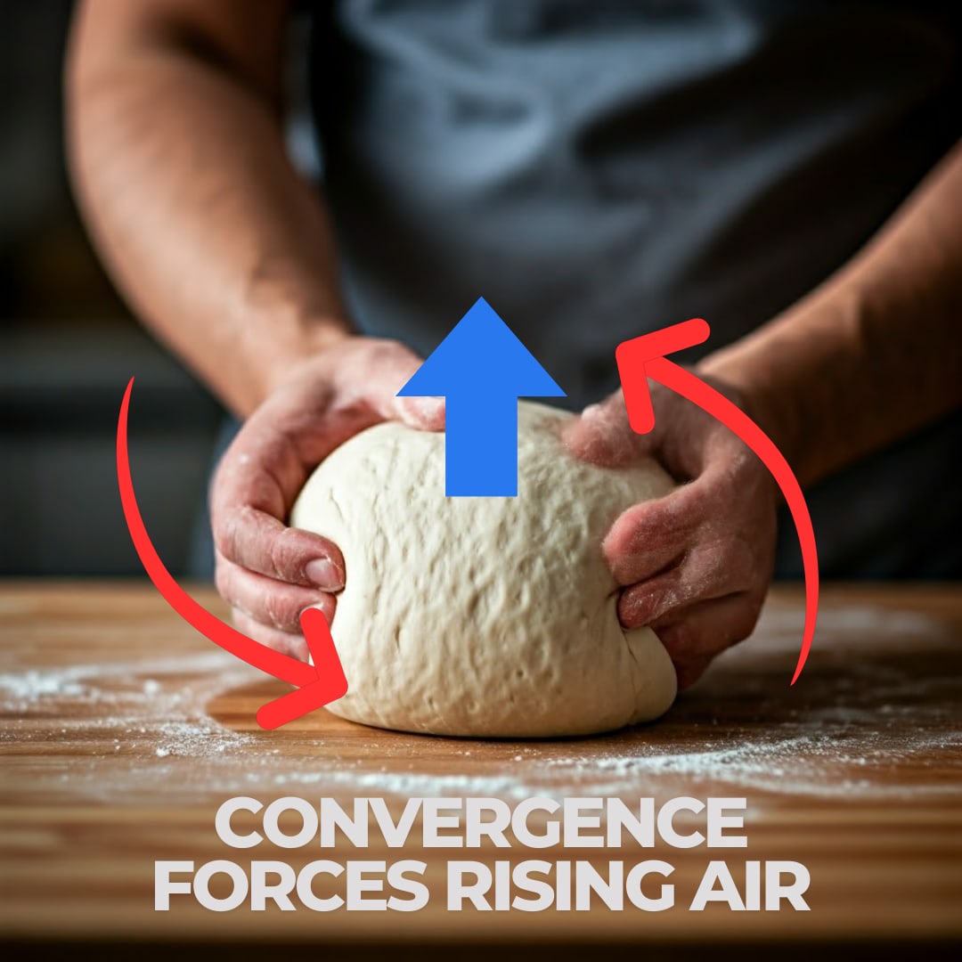 Forcing: the “kneading” of storm bakingLift in meteorology is any process that forces air parcels upward through the atmosphere. Without lift, even the most moisture-laden, unstable air would remain dormant…just like dough left unmixed on the counter.